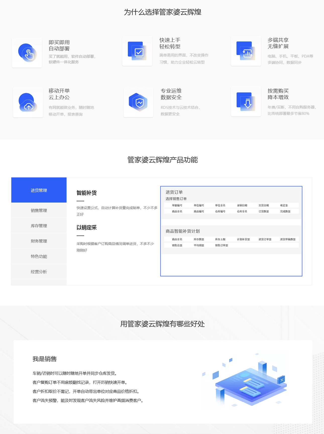 提供進貨、銷售、庫存、零-售POS、 換貨業務、委托受托、借進借出、賬外業務、委外加工、生產組裝等多種業務模式。