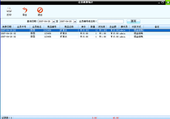 點擊“會員管理”進(jìn)入到會員消費(fèi)主界面如圖: