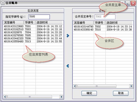 來客登記→更換手牌:假如因為店內原因或客人要求,造成客人當前占用的項目必須終止提供,但客人的消費并未終結,為此,可以通過更換手牌來將客人資料及消費信息在不進行結帳操作的情況下轉到另一新項目下。例如:換包廂(手牌)。