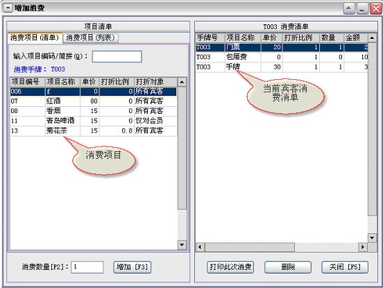 此項目在系統設置中設置,在為賓客增加消費時使用。