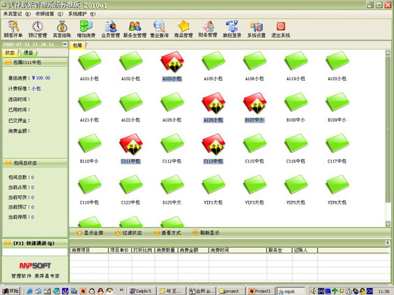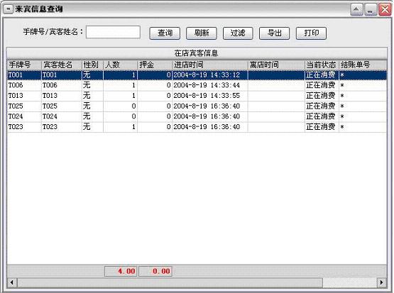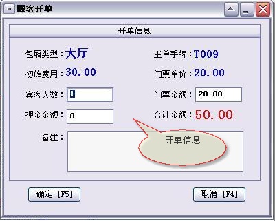 來賓登記→顧客開單:每個客戶發生消費前必須進行登記(建立客戶帳),給客戶安排一個包廂(手牌)等包廂項目,包廂項目必須是在“系統設置”模塊中的“包廂項目”中已經設置,系統只能對已設置的包廂項目(手牌)進行登記。