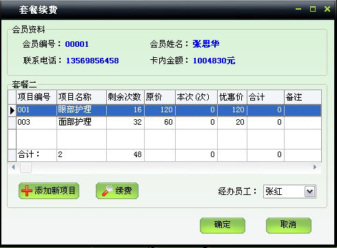 | 包括會員基本信息、本卡售價、業務員工、使用套餐、皮膚狀況、護理計劃、會員照片等信息 | |