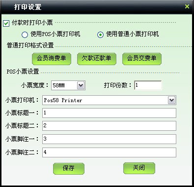 | 可設置小票打印和報表打印兩種方式,其中報表打印可自行設置報表的詳細格式 |
