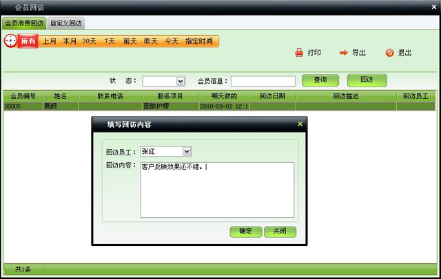 | 回訪包括兩種,一種是對已做過護理的的顧客進行回訪,另外一種是自定義的回訪。 | |