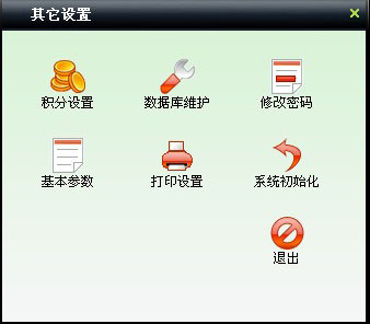 | 包括積分設置、數據庫維護、修改密碼、基本參數設置、打印設置、系統初始化等操作。 | |