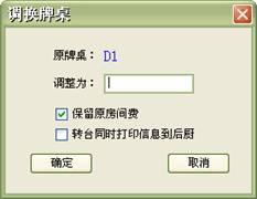 來客登記→更換牌桌:假如因為店內原因或客人要求,造成客人當前占用的項目必須終止提供,但客人的消費并未終結,為此,可以通過更換牌桌來將客人資料及消費信息在不進行結帳操作的情況下轉到另一新項目下。例如:換房間(牌桌)。