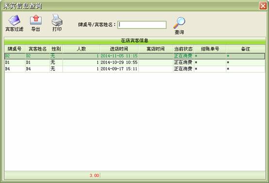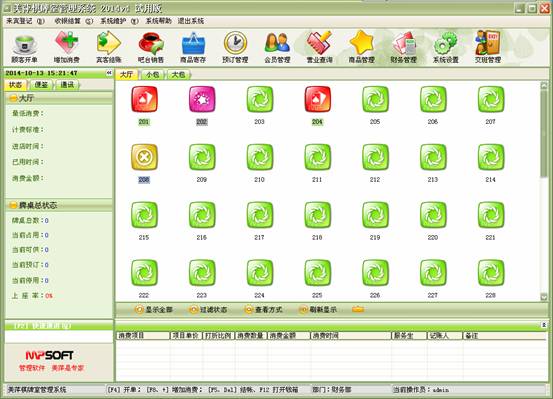 來賓登記→顧客開單:每個客戶發生消費前必須進行登記(建立客戶帳),給客戶安排一個房間(牌桌)等房間項目,房間項目必須是在“系統設置”模塊中的“房間項目”中已經設置,系統只能對已設置的房間項目(牌桌)進行登記。