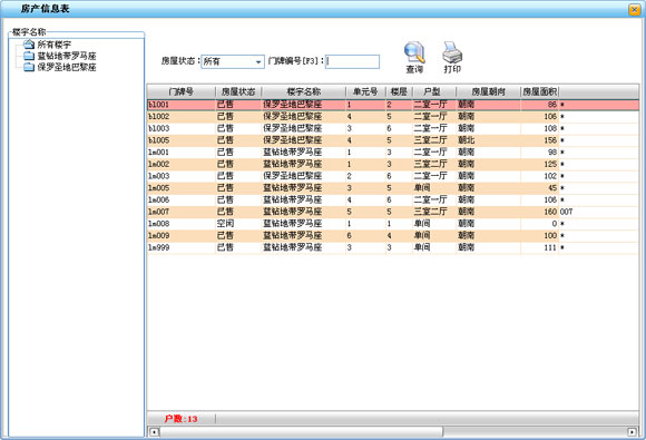 ·用于查詢打印房產的基本信息,可隨時掌握當前所有房產的業務和出租情況。