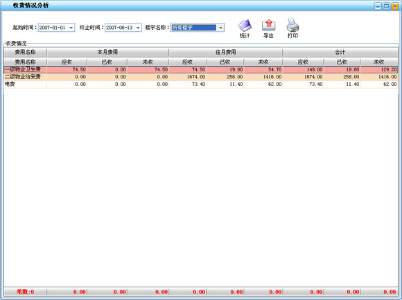 ·用來統計一定時間段內各種費用的本月、往月及合計的應收、未收、已收情況,可供用來分析整個物業費的收取情況