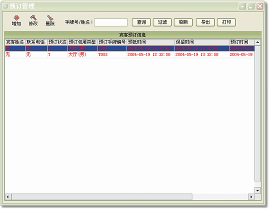 商品項目:是店方提供給賓客的并收取一定費用的項目(例如:服務項目、酒水、香煙等)。此項目在系統設置中設置,在為賓客增加消費時使用。