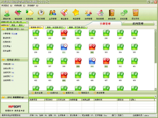 來客登記→更換包間:假如因為店內原因或客人要求,造成客人當前占用的項目必須終止提供,但客人的消費并未終結,為此,可以通過更換包間來將客人資料及消費信息在不進行結帳操作的情況下轉到另一新項目下。例如:換包間。