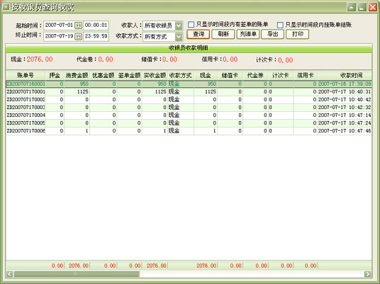 • 點擊“刷新”按鈕,數據表將顯示所有收員的收款明細。