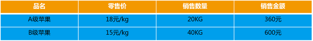 3)前臺銷售:前臺銷售只銷售A級蘋果、B級蘋果以及C級蘋果這些商品,如前臺某一天這些成分商品的銷售明細(xì)為: