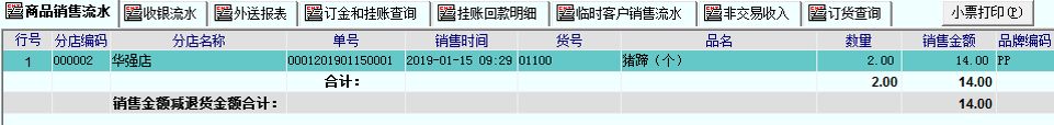 3) 前臺銷售:前臺銷售豬蹄(個)2個 ,商品的銷售明細(xì)為:
