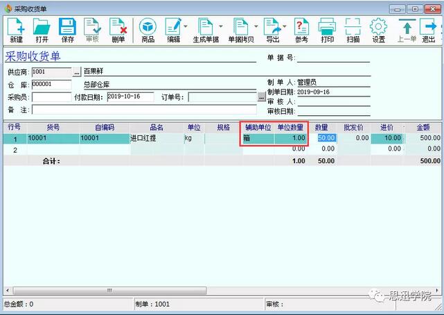 注意:單位數(shù)量對(duì)應(yīng)輔助單位中的單位系數(shù)。