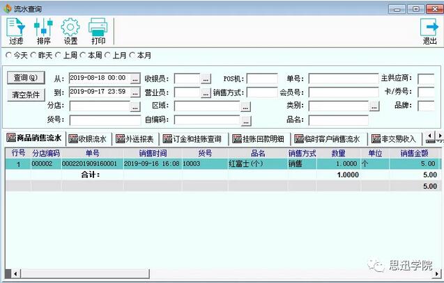 在總部后臺(tái)[零售管理]——[流水查詢]中記錄的是紅富士(個(gè))的銷售數(shù)量。