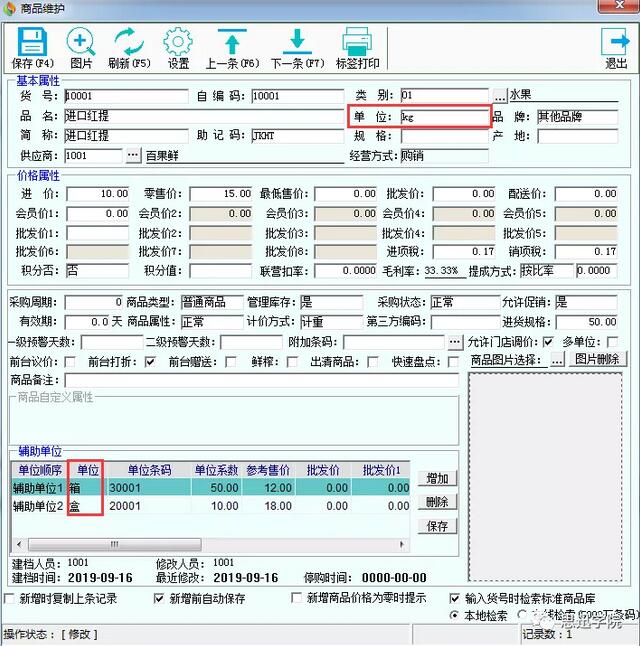 在總部后臺(tái)[基礎(chǔ)檔案]——[商品檔案]中添加進(jìn)口紅提的商品檔案,單位為kg。