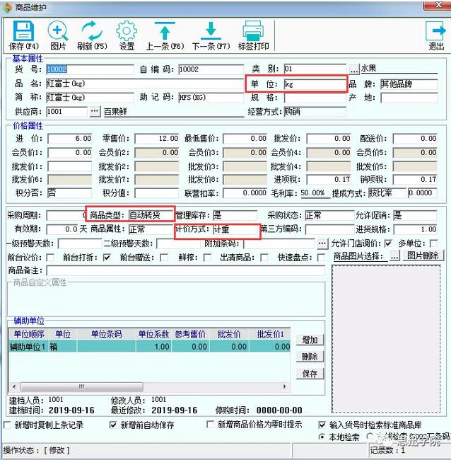 并且紅富士(kg)的商品類型是自動(dòng)轉(zhuǎn)貨,計(jì)價(jià)方式為計(jì)重。