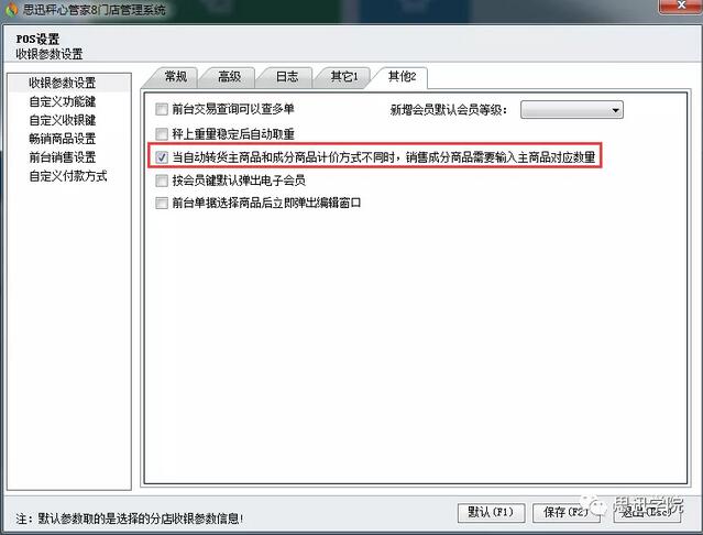 在門(mén)店前臺(tái)[系統(tǒng)管理]——[收銀設(shè)置]——[其他2]中勾選“當(dāng)自動(dòng)轉(zhuǎn)貨主商品和成分商品計(jì)價(jià)方式不同時(shí),銷售成分商品需要輸入主商品對(duì)應(yīng)數(shù)量”選項(xiàng)。