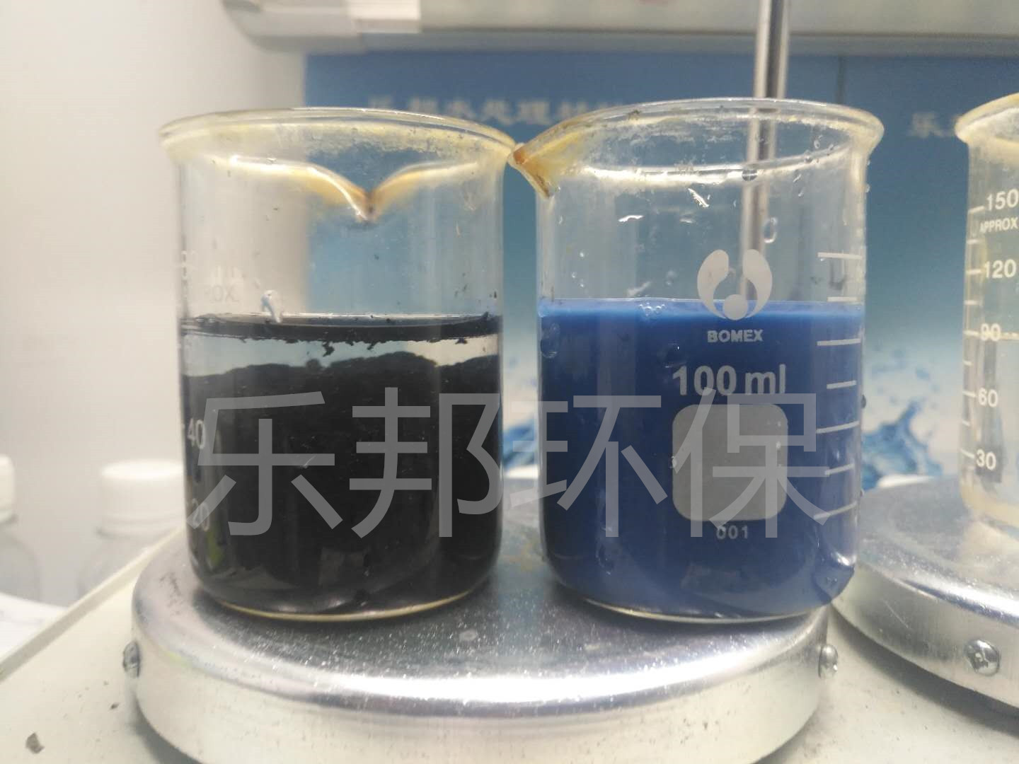 樂邦聚合氯化鋁生產(chǎn)廠家收到客戶寄送水性油漆廢水水質(zhì)呈現(xiàn)藍(lán)色,PH 值6(弱酸),客戶要求絮凝沉淀、固液分離,脫色。樂邦聚合氯化鋁廠家的技術(shù)人員采用陽離子聚丙烯酰胺、聚合氯化鋁、片堿、活性炭配合使用后,處理效果完全達(dá)到了客戶要求。