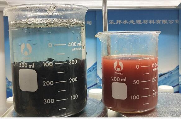 此次針對湖北某制藥廢水在絮凝劑的選擇時,因?yàn)閺U水水質(zhì)整體呈黑色,PH值為弱堿性,樂邦聚合氯化鋁廠家選用了工業(yè)級聚合氯化鋁和陽離子聚丙烯酰胺來配合使用,處理后水質(zhì)PH值呈中性,固液分離效果好,絮團(tuán)緊實(shí),出水澄清。