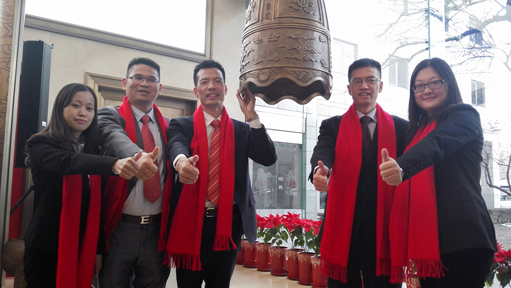 科脈董事長曾昭志、副總經理張蘇利、副總經理陳宏亮、董事會秘書楊雪娟、財務經理何環美出席了敲鐘儀式,共同見證了科脈這一重要的里程碑時刻。