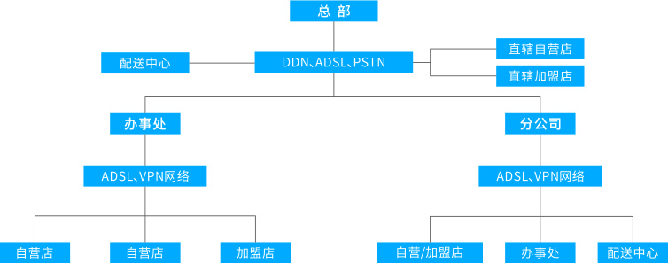 2、多層次、分布式網絡體系,滿足連鎖經營模式